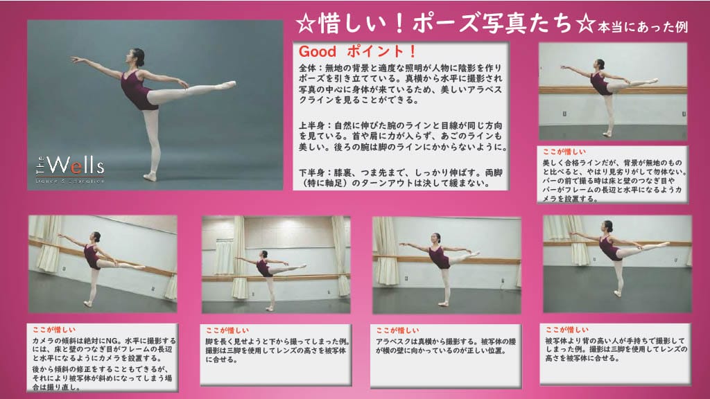 ポーズ写真はお教室の先生のご指導の下に撮影していただくことが望ましいです。