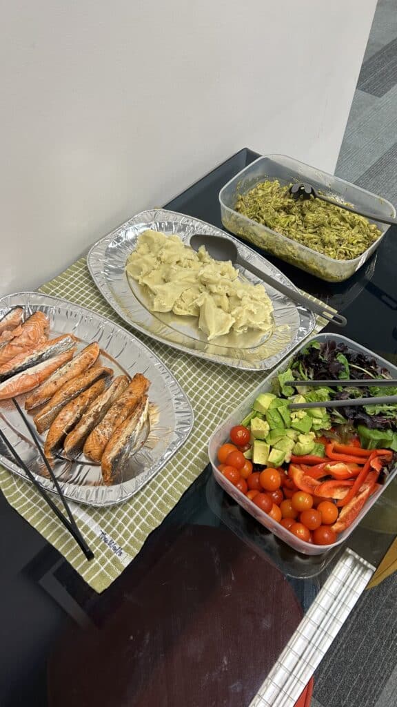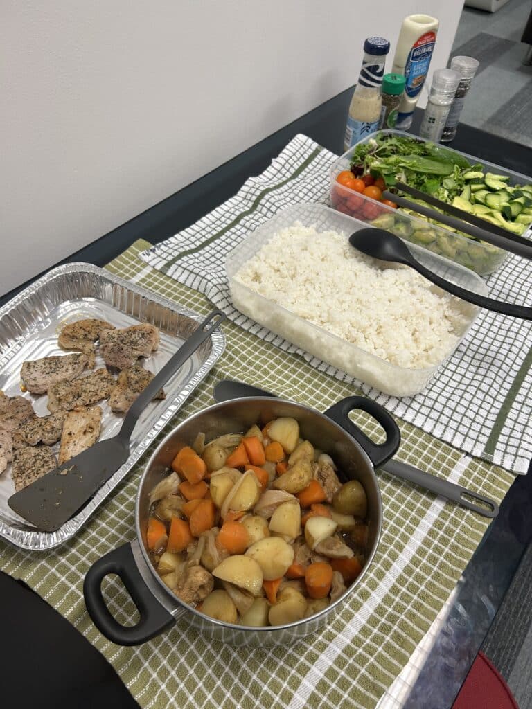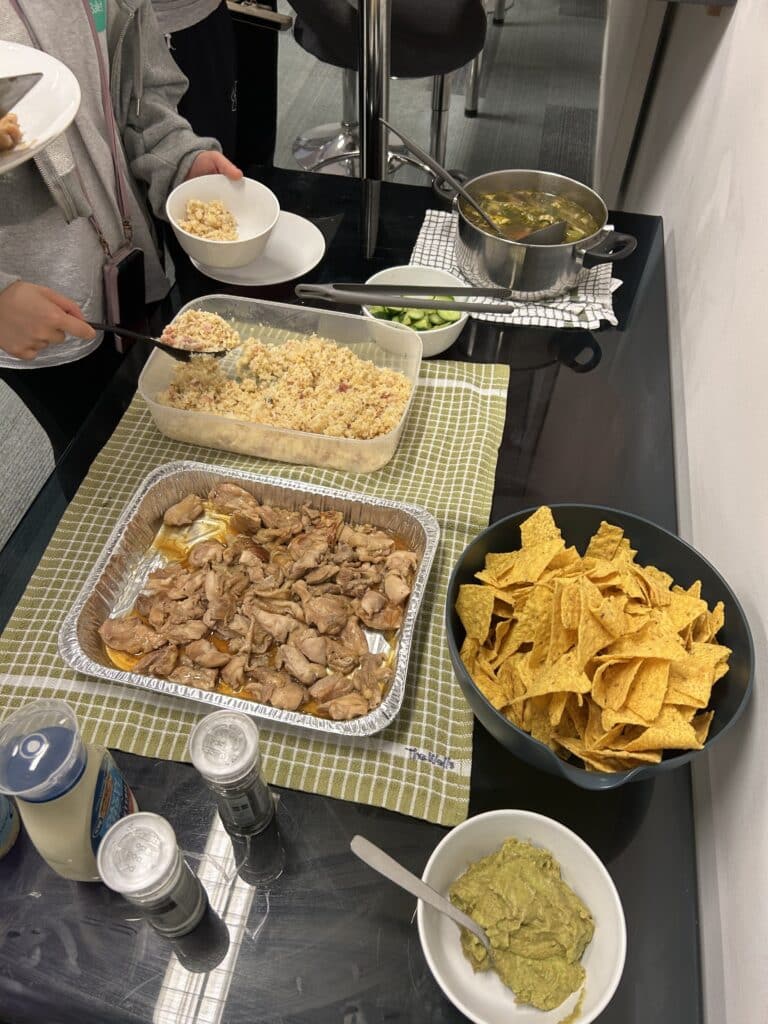 1週目の朝と昼は自炊、夜はスタッフが作ったものを滞在先のコモンルーム(共有ラウンジ)でお皿を持ち寄ってバイキング形式で頂きます。